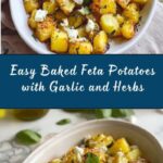 A simple and delicious recipe for Baked Feta Potatoes featuring crispy golden potatoes baked with a block of creamy feta cheese, aromatic herbs, roasted garlic, and a touch of honey and lemon for a perfect balance of savory and tangy flavors. This comforting dish is easy to prepare and makes an excellent side or light meal for two.