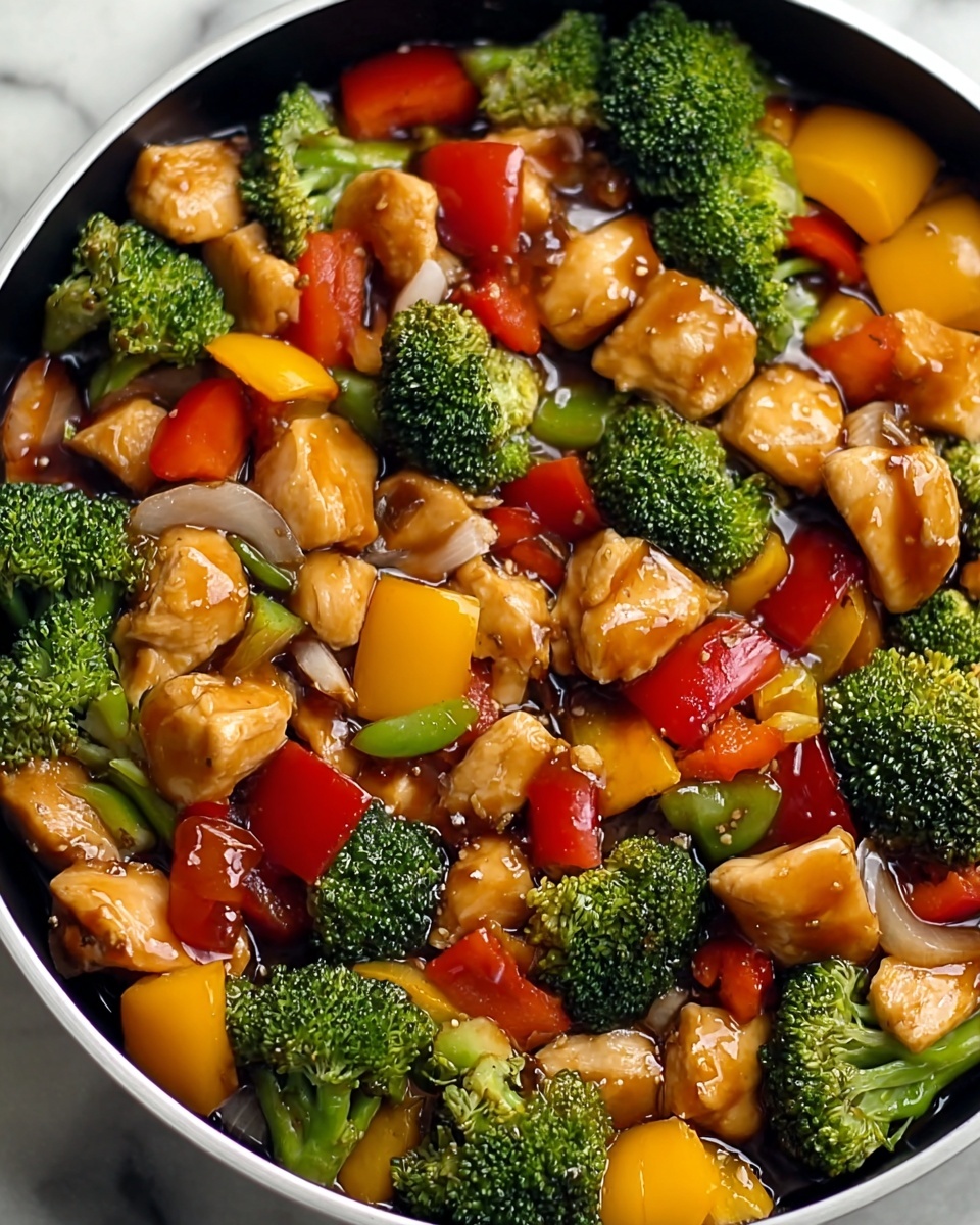 This Chicken Stir Fry recipe is a quick and flavorful dish featuring tender chicken breasts and a colorful medley of fresh vegetables tossed in a tangy BBQ-soy sauce. Ready in just 25 minutes, it’s perfect for a nutritious weeknight dinner that combines savory, sweet, and aromatic flavors with simple ingredients.