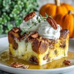 Leftover pumpkin bread pudding keeps well in the refrigerator for up to 3 days when covered tightly. Store it in an airtight container to keep the custard moist and prevent it from drying out. Reheat gently to enjoy it as deliciously as the first day.