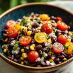 A vibrant and refreshing Black Bean Corn Salad featuring black beans, sweet corn, red bell pepper, red onion, and avocado, tossed with a zesty lime and cumin dressing. Perfect as a side dish or a light, healthy snack, this salad is vegan, gluten-free, and packed with fiber and flavor.