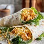 These Buffalo Chicken Caesar Salad Wraps combine spicy buffalo chicken with crisp romaine and creamy Caesar dressing, all wrapped in soft flour tortillas for a quick, flavorful meal perfect for lunch or dinner.