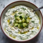 • Cucumber (about 300g), deseeded and grated: Adds a crunchy, hydrating freshness that balances the yogurt’s richness.