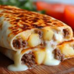 These Cheesy Potato Burritos with Beef combine crispy golden potatoes, seasoned ground beef, and melted cheese wrapped in warm flour tortillas, perfect for a hearty and satisfying meal in just 35 minutes.