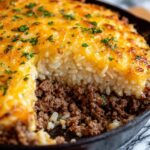 This Cheesy Ground Beef and Rice Casserole is a comforting and hearty dish combining savory ground beef, tender rice, and melty cheddar cheese baked to perfection. Perfect for a family dinner, it delivers rich flavors with Italian seasoning, garlic, and diced tomatoes in every bite.