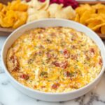 This Chicken Enchilada Dip is a flavorful, cheesy appetizer perfect for parties and gatherings. Made with tender cooked chicken, cream cheese, spicy Rotel tomatoes, and a blend of Mexican spices, it’s baked until bubbly and served warm with crunchy tortilla chips for dipping.
