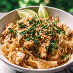 For a fun twist or a special occasion, try serving your Chicken Pad Thai in individual banana leaf cups or on a bed of crisp lettuce leaves. This adds an exotic touch that impresses guests and enhances the overall sensory experience. Don’t be afraid to sprinkle extra chopped peanuts or scallions on top for a vibrant, inviting look.