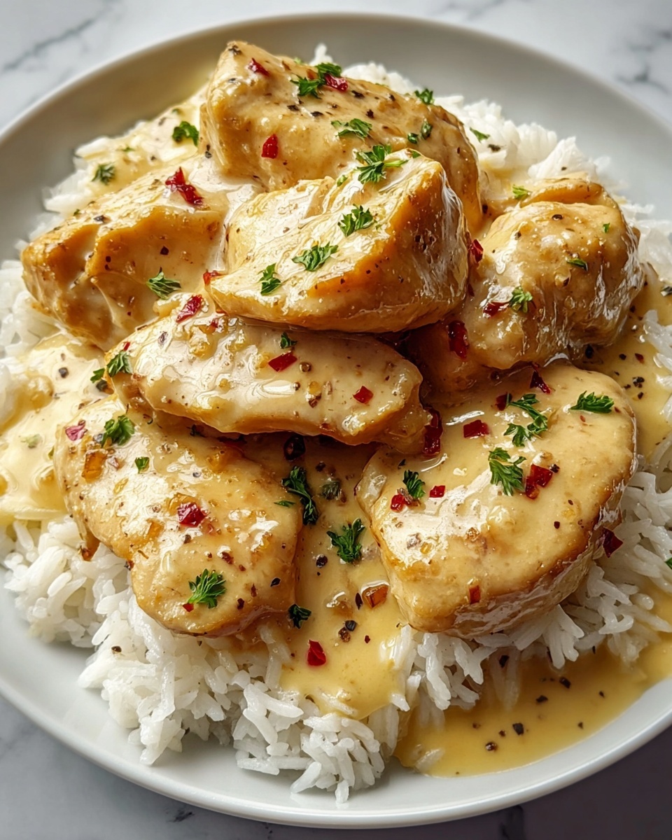 This Chicken Scampi with Creamy Garlic Parmesan Rice is a delicious, comforting dish featuring tender chicken breast pieces cooked in a rich garlic Parmesan sauce, served over fluffy, buttery rice cooked in chicken broth. Ready in just 30 minutes, this savory meal combines creamy textures and bold Italian flavors, making it perfect for a quick weeknight dinner or a special family meal.