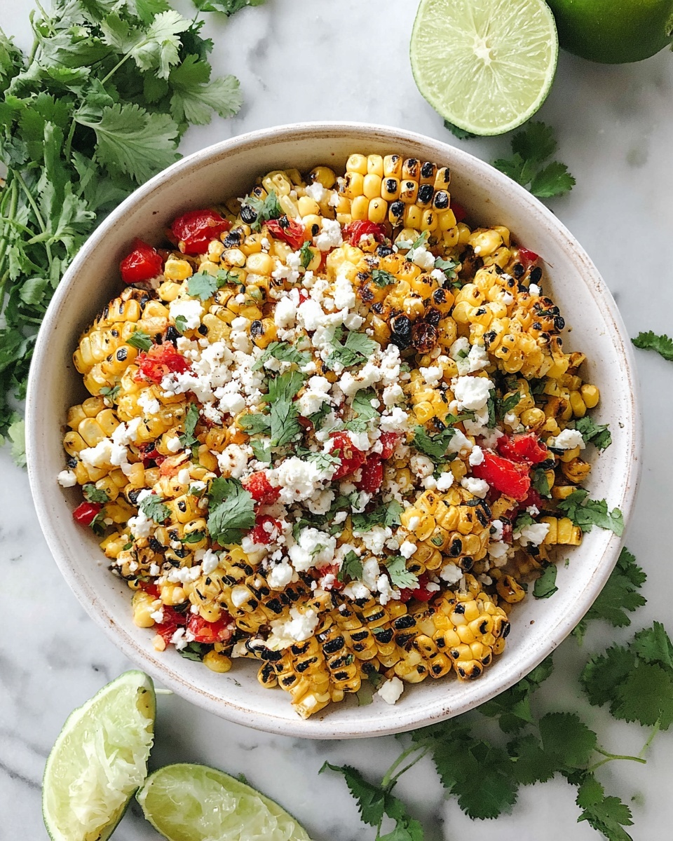 This Chili-Lime Grilled Corn Salad Recipe pairs beautifully with a variety of mains. Serve it alongside grilled chicken or fish for a light summer meal. It also plays well with smoky barbecued ribs or as a vibrant side to tacos and quesadillas, adding a fresh burst of flavor and texture to your spread.