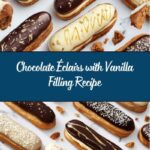 Indulge in the classic French pastry with these Chocolate Éclairs filled with a rich vanilla cream and topped with a luscious chocolate glaze. Crafted from light and airy choux pastry, these éclairs are baked to golden perfection, filled with smooth vanilla pastry cream, and finished with a shiny chocolate topping. Perfect for dessert or an elegant treat, this recipe guides you through making every component from scratch.