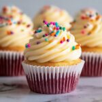 - Frost the Cupcakes: Once the cupcakes have cooled completely to room temperature, generously spread or pipe the vanilla buttercream frosting atop each cupcake.