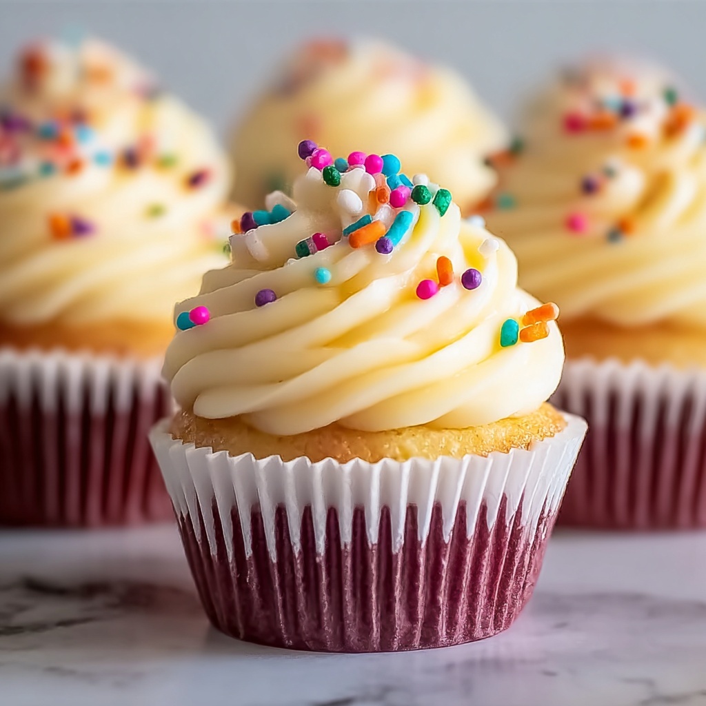 These classic vanilla cupcakes deliver a soft, moist crumb topped with a creamy vanilla buttercream frosting. Perfect for celebrations or just a sweet treat, this recipe yields a dozen cupcakes with a balanced sweetness and rich flavor from the combination of butter, vanilla, and sugar.
