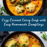 A comforting and flavorful Coconut Curry Soup with soft dumplings, packed with vibrant vegetables and aromatic spices. This hearty soup combines creamy coconut milk with curry and turmeric for a warming dish, perfect for any cozy meal.