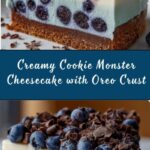 The garnishes can transform this cheesecake from delightful to downright spectacular. Whipped cream adds a soft, airy contrast to the dense cheesecake, while extra chunks or whole chocolate sandwich cookies make for a fun, textural element that’s festive and playful. Don’t be shy about piling on those cookie pieces—they bring that signature Cookie Monster flair you-and-your-guests will love.