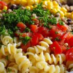 Start by boiling your elbow macaroni or rotini pasta until it’s perfectly al dente according to the package instructions. Once cooked, drain it thoroughly and rinse under cold water. This step is crucial to stop the cooking process and avoid mushy pasta, plus it prepares the noodles to soak up the dressing beautifully.