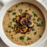 This Cream of Mushroom Soup is a rich and velvety homemade soup made with fresh mushrooms, sautéed onions and garlic, blended with vegetable broth and finished with heavy cream. Perfect as a comforting appetizer or light meal, this recipe yields four servings and takes about 40 minutes from start to finish.