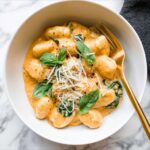 Store-bought potato gnocchi works beautifully for this recipe because it cooks quickly and has that soft, pillowy texture that pairs perfectly with the creamy sauce.