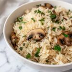 This Mushroom Rice recipe is a flavorful and comforting dish made by sautéing fresh mushrooms, onions, and garlic, then simmering them with long grain white rice in a savory chicken broth mixture. Perfect as a side or a main, this dish offers a rich, earthy taste with a tender rice texture and fresh parsley garnish.