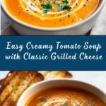 This Creamy Tomato Soup with Grilled Cheese Sandwich is a comforting classic, perfect for a cozy meal. The smooth, rich tomato soup is enhanced with a touch of cream and aromatic herbs, paired perfectly with a crispy, cheesy grilled sandwich made with golden toasted bread and melted cheddar cheese.
