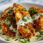 This Crispy Chicken with Creamy Dijon Sauce recipe features golden, breadcrumb-coated chicken breasts pan-fried to perfection and served with a rich, tangy Dijon mustard cream sauce. Quick to prepare and perfect for weeknight dinners, this dish balances crispy texture with a smooth, flavorful sauce enhanced by lemon and fresh parsley garnish.