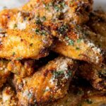 Crispy Garlic Parmesan Wings are a delicious appetizer featuring oven-baked chicken wings coated with a flavorful blend of spices, then tossed in a garlicky butter sauce and topped with fresh Parmesan cheese and parsley. Perfect for game day or party snacks, these wings achieve a crispy texture without frying by baking with baking powder.