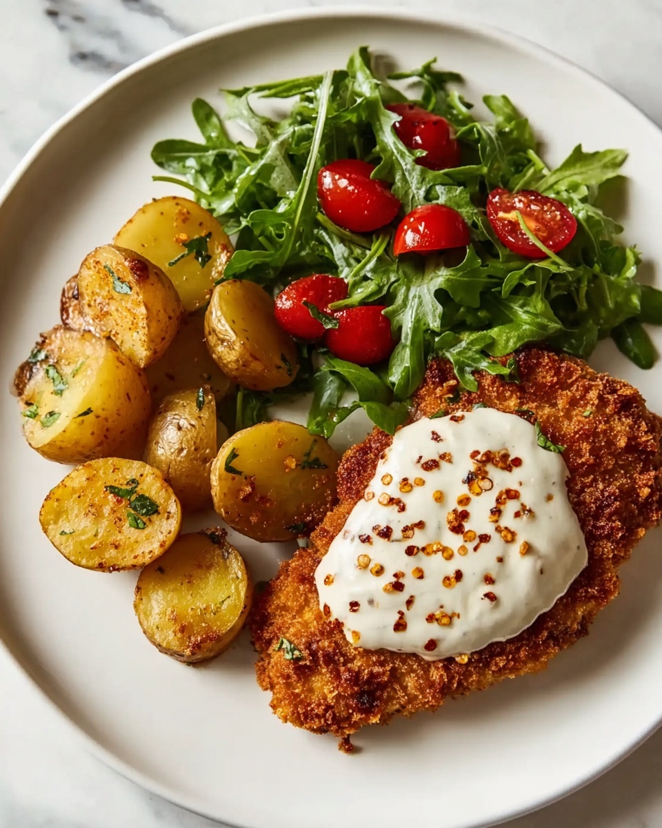 Heat vegetable oil in a large skillet over medium-high heat. Test the oil by dropping a bit of breadcrumb in—it should sizzle right away. Fry the chicken in batches so the oil temperature stays consistent, about 3 to 4 minutes on each side until deep golden brown and irresistibly crispy. Transfer the cooked chicken to a wire rack to drain any excess oil while keeping the crust crisp.