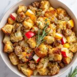 This delicious Crockpot Stuffing with Sausage and Apple is a comforting and flavorful side dish perfect for holiday meals or family dinners. Made with savory ground sausage, sweet apples, and a blend of aromatic vegetables and seasonings, this stuffing is slow-cooked to perfection, resulting in a moist and fragrant dish that complements any roast or turkey.