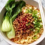 Dan Dan Noodles (Dan Dan Mian) is a classic Sichuan street food dish featuring spicy, savory ground pork served over noodles with a rich, nutty sesame sauce and preserved mustard greens. This recipe combines the bold flavors of chili oil, Sichuan peppercorns, and five spice powder with tender noodles and fresh greens for a satisfying and authentic Chinese meal ready in just 30 minutes.