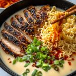 This Fiery Chicken Ramen with Creamy Garlic Sauce Recipe is such a comforting and exciting bowl of goodness that it really deserves a spot in your regular rotation. It’s straightforward to make, bursting with flavor, and feels like a warm hug on chilly nights. I can’t wait for you to try it and experience the magic of creamy, spicy, and satisfying all at once!