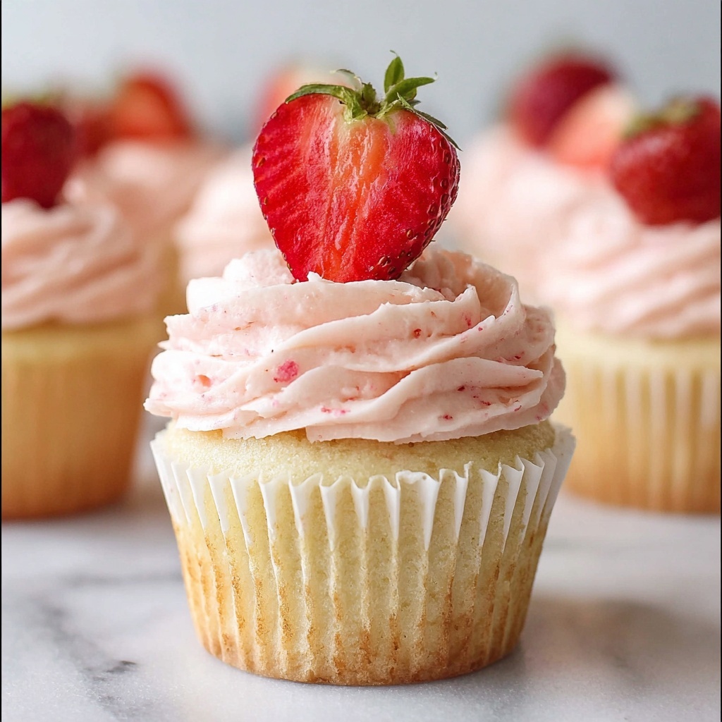These Fluffy Vanilla Cupcakes topped with a fresh and vibrant Strawberry Buttercream are a delightful treat perfect for any occasion. The cupcakes are light, moist, and bursting with classic vanilla flavor, while the strawberry buttercream adds a sweet, fruity freshness made from real fruit puree, creating a balanced and irresistible dessert.