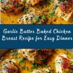 This Garlic Butter Baked Chicken Breast recipe features tender, juicy chicken breasts seared to golden perfection and baked in a rich garlic butter sauce infused with fresh herbs. Perfect for a flavorful and easy weeknight dinner, it combines classic tastes of garlic, rosemary, thyme, and parsley to elevate a simple chicken breast into a delicious meal.