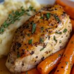 This Garlic Herb Chicken & Carrot Plate is a simple yet flavorful meal perfect for weeknight dinners. Tender boneless, skinless chicken breasts are seasoned with aromatic herbs and seared to golden perfection on the stovetop. Meanwhile, sweet carrots are roasted with garlic and herbs in the oven until caramelized and tender. The dish is finished with a squeeze of lemon juice and fresh parsley for a bright, fresh touch. Ready in just 40 minutes, it’s a healthy and delicious option that’s easy to prepare and sure to please.