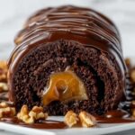 This Gooey Chocolate Caramel Turtle Cake Roll is a decadent dessert featuring a moist chocolate sponge cake rolled with luscious caramel sauce and crunchy pecans, all topped with a rich chocolate ganache and extra pecan halves for garnish. Perfect for chocolate and caramel lovers looking for an impressive yet easy-to-make cake roll.
