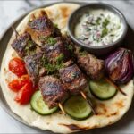 This Greek Lamb Souvlaki recipe features tender, marinated lamb leg cubes grilled to perfection and served with easy homemade pita bread. The lamb is infused with lemon, garlic, and traditional herbs, while the pita is freshly baked for a soft, fluffy texture that perfectly complements the flavorful meat. Ideal for a Mediterranean-inspired meal that’s both satisfying and delicious.