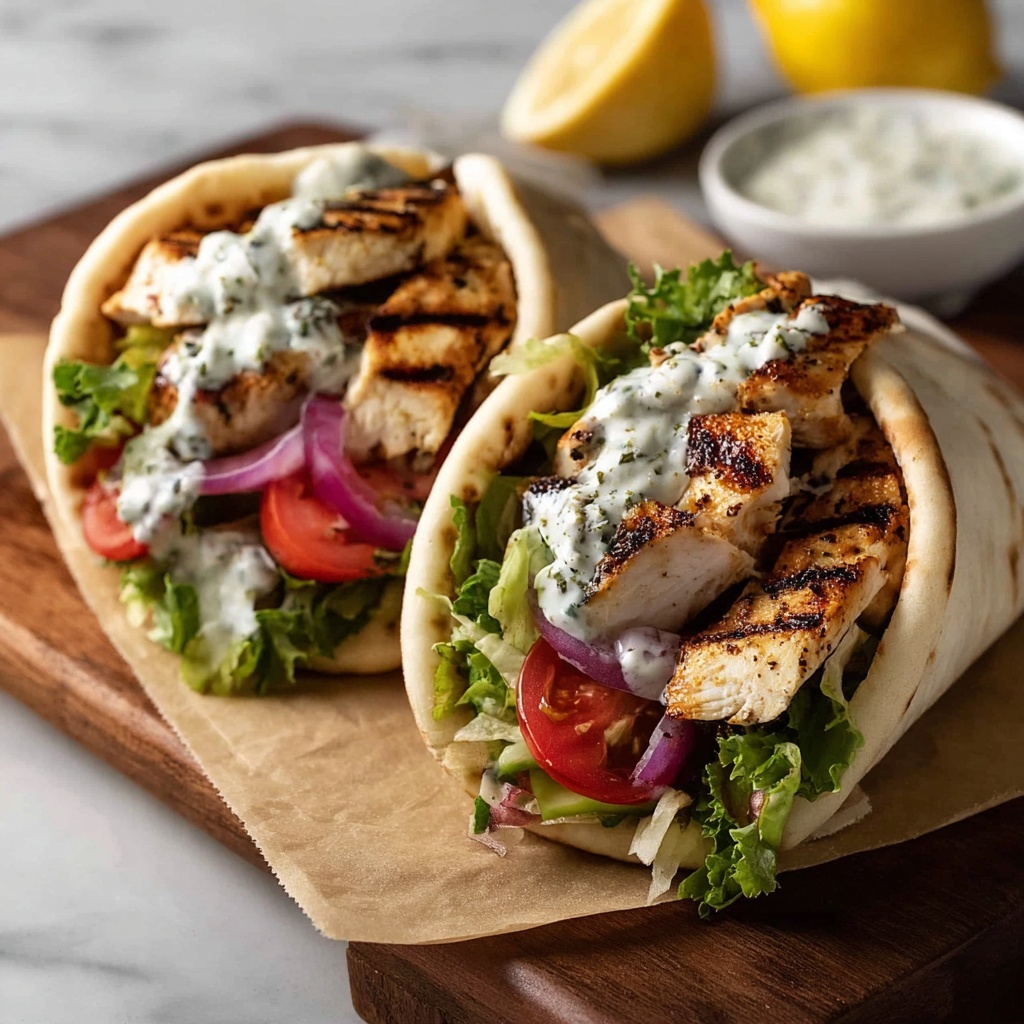 This Greek-Style Chicken Gyros recipe features tender marinated chicken breast cooked to perfection on the grill or skillet, served in warm pita bread with homemade creamy tzatziki sauce, fresh Greek salad, and a topping of feta cheese. Ideal for a flavorful Mediterranean meal that is easy to prepare and sure to impress.