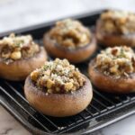 For entertaining, place the mushrooms on a rustic wooden board with a scattering of fresh herbs and lemon wedges around them. Use a decorative platter layered with vibrant greens, like arugula or baby spinach, for a pop of color that invites guests to dig in. You can even skewer smaller mushrooms stuffed with this filling as bite-sized party treats.