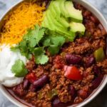 - Serve: Spoon the hot chili into bowls and garnish with fresh cilantro if desired. Enjoy with rice, crusty bread, or tortilla chips for a complete meal.