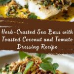 This Herb-Crusted Sea Bass recipe features delicate sea bass fillets baked to perfection with a flavorful herb crust, complemented by a vibrant tomato dressing and topped with toasted coconut for a delightful crunch. Perfect for an elegant yet easy-to-make meal.