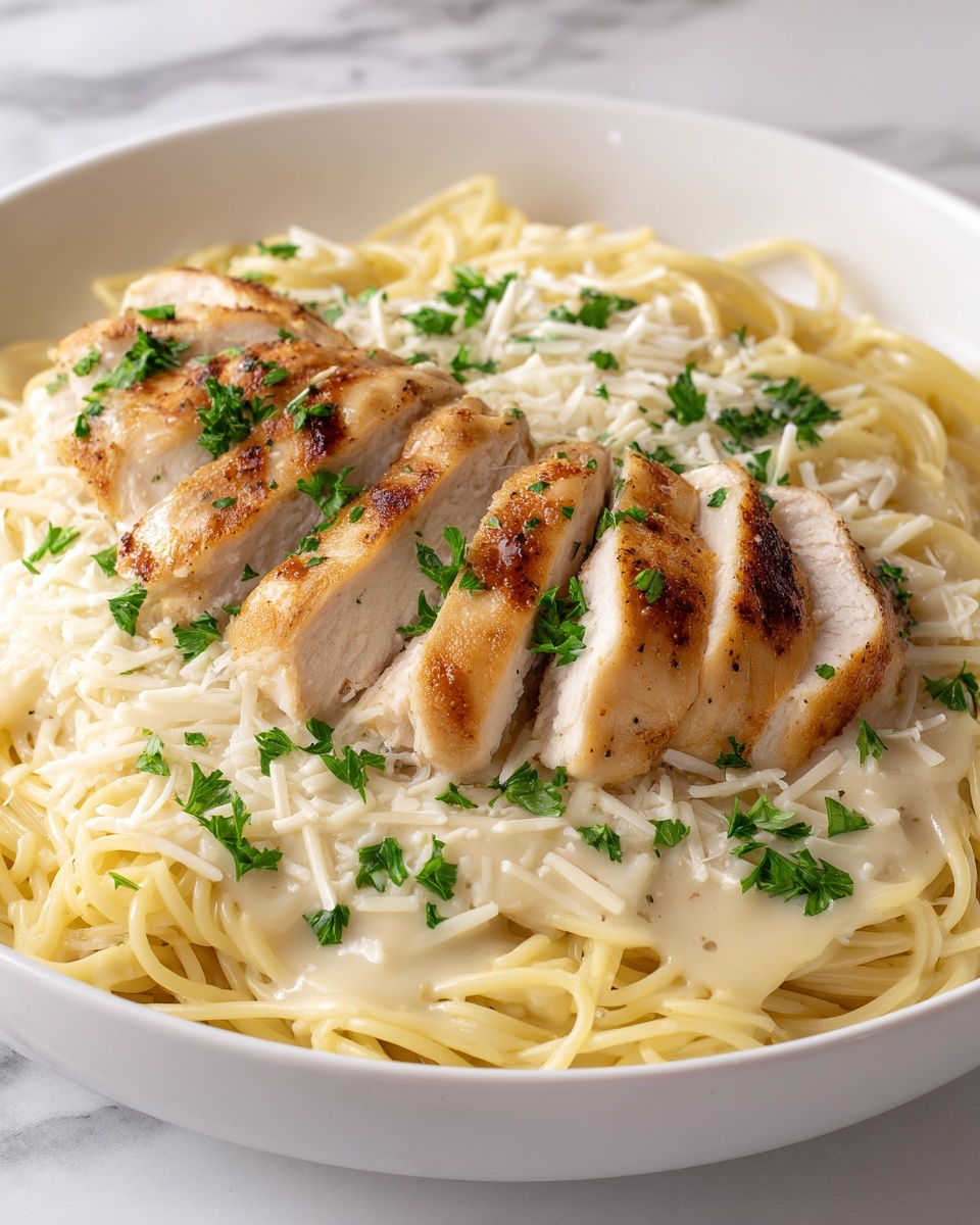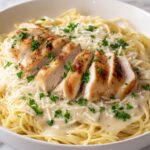 - Serve: Toss the cooked linguine pasta with the creamy sauce until well coated. Plate the pasta alongside the baked Italian chicken breasts and serve immediately for a hearty, comforting meal.