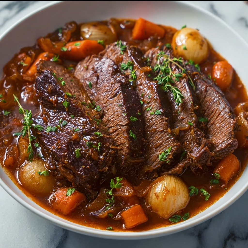 The Italian Pot Roast (Stracotto) Recipe brings together tender, slow-cooked beef and rich, vibrant flavors that will make your kitchen smell irresistible. This hearty and comforting dish showcases a perfect harmony of aromatic herbs, savory bacon, and a luscious tomato broth that melts in your mouth. Whether you’re making a family dinner or impressing guests, this recipe will become a treasured favorite for its incredible depth and soul-warming taste.