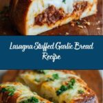 Lasagna Stuffed Garlic Bread is a delicious fusion recipe combining the comforting flavors of classic lasagna with the crunchy, buttery texture of garlic bread. Layers of tender pasta sheets, savory sausage meat sauce, creamy béchamel, and a blend of melted cheeses are stuffed inside crispy garlic bread loaves, then baked to golden perfection. This hearty dish makes an impressive and satisfying meal for family dinners or gatherings.