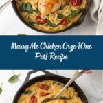 This Marry Me Chicken Orzo is a creamy, flavorful one-pot dish featuring tender chicken breasts cooked in a savory blend of sun-dried tomatoes, herbs, and creamy sauce, served over perfectly cooked orzo pasta with fresh spinach and basil garnish. It’s a comforting and elegant meal that comes together quickly and easily in one skillet.