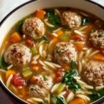 This hearty Meatball Soup recipe combines flavorful homemade beef meatballs with a medley of fresh vegetables and tender pasta, simmered in a rich tomato and beef broth. Perfect for a comforting weeknight meal, this soup offers a balanced blend of protein, veggies, and savory herbs with a delightful Italian twist.