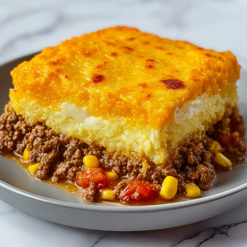 In a mixing bowl, combine the Jiffy cornbread mix with the eggs and milk. Stir until just combined to keep the batter light and tender. Avoid overmixing to maintain a fluffy texture, which will contrast delightfully with the hearty beef layer.