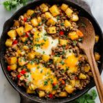 This flavorful Mexican Ground Beef and Potato Skillet is a hearty and easy one-pan meal perfect for weeknight dinners. Tender golden potatoes are cooked with lean ground beef, colorful bell peppers, and a blend of smoky spices and fresh cilantro, all topped with melted cheese for a satisfying finish.