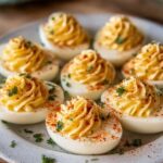 Sprinkle a little paprika over the filled eggs for a pop of beautiful color and a subtle smoky flavor. If you’re feeling extra indulgent, add fresh herbs or a bit more crumbled bacon on top to truly make these deviled eggs unforgettable.