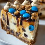 This Monster Cookie Peanut Butter Cheesecake Pie is a decadent no-bake dessert combining a buttery graham cracker crust with a creamy peanut butter cheesecake filling. Topped generously with crumbled monster cookies, chocolate chips, and colorful M&M’s, this pie offers a perfect balance of smoothness, crunch, and vibrant flavors. Ideal for parties and special treats, it sets overnight in the refrigerator to achieve the perfect cheesecake texture.