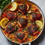 This easy One Pan Spanish Chicken and Rice recipe combines tender chicken breasts or thighs with flavorful Spanish-inspired spices, sautéed and simmered together in one skillet. The dish features a smoky blend of paprika, cumin, chili powder, coriander, and garlic powder, infused with fresh lemon juice and garnished with vibrant cilantro or parsley. Perfect for a quick weeknight dinner, this hearty meal is satisfying, comforting, and requires minimal cleanup.