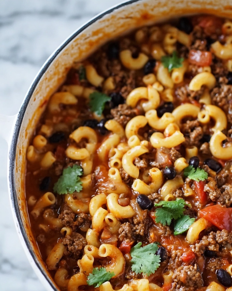 One Pot Chili Mac and Cheese is a hearty and comforting American dish combining savory ground beef, robust chili spices, tender elbow macaroni, and creamy melted cheeses. Cooked entirely in one pot on the stovetop, this easy-to-make recipe balances rich flavors and textures with convenience, making it perfect for a satisfying weeknight dinner.