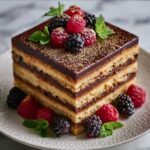 A light dusting of cocoa powder or edible gold leaf adds an elegant touch to your Opera Cake Recipe. Fresh berries or a few coffee beans on top also add a delightful contrast and hint at the flavors inside.