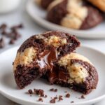 While the peanut butter dough rests, whisk together the melted butter and white sugar to create a smooth, sweet base. Stir in the cocoa powder for that iconic brownie richness, followed by the egg and vanilla extract, which bring moisture and aroma. Fold in the flour, baking powder, and salt to form the dough, then gently fold in the chocolate chips. These bits of chocolate ensure that every bite offers a delightful melt-in-your-mouth experience.